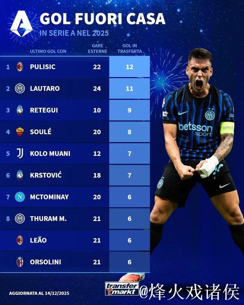 2025年意甲客场射手榜:普利西奇12球居首,劳塔罗位列次席